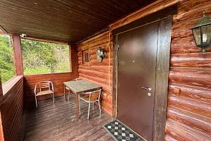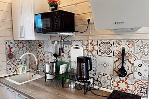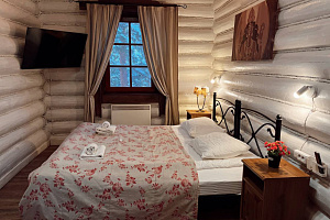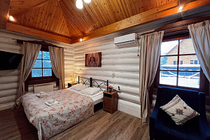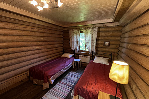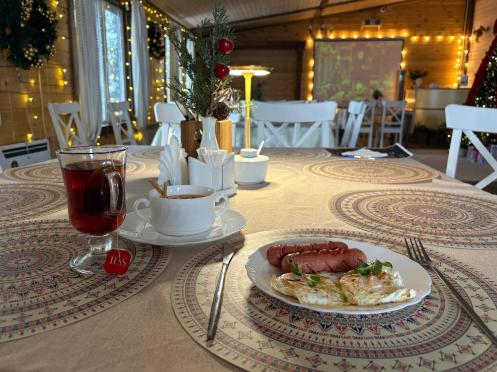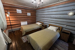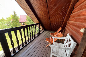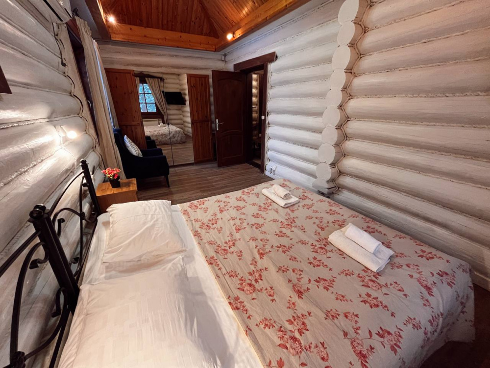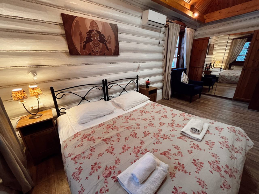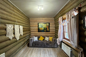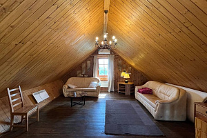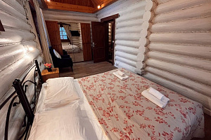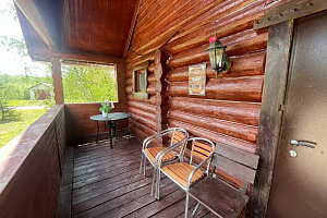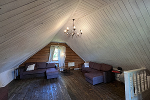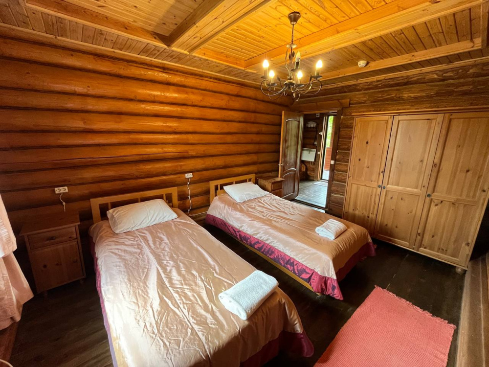 Домик брали на 6 человек, номер 7. Скажу сразу - на сильные морозы не рассчитан. На первом этаже в коридоре и туалете было очень холодно. В комнатах и на втором этаже - тепло. Кухни нет, есть плитка на одну конфорку, но готовить по факту негде - плитка и маленький холодильник в коридоре. С другой стороны, на территории есть возможность приготовить обед в арендованной кухне, но мы этим не воспользовались. Диваны на втором этаже продавленные, и по оснащению много пожеланий: вообще не продумана расстановка мебели в доме! Усе как-то без души… ну вот есть камин, и он красивый, а вот светильников для уюта не хватает… и ковер на пол положить можно другой, более яркий и стильный, и карнизы починить..