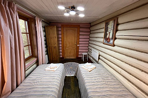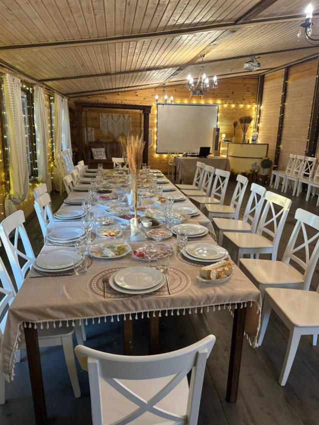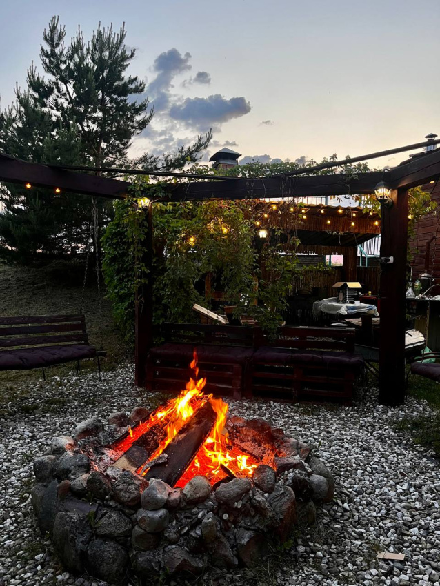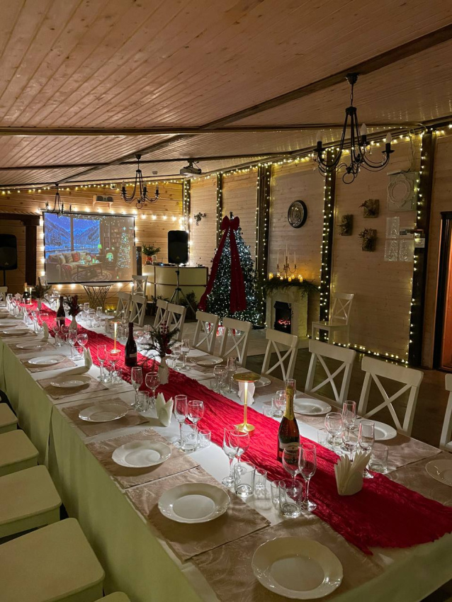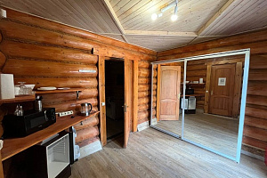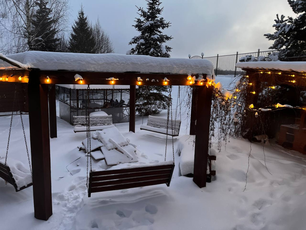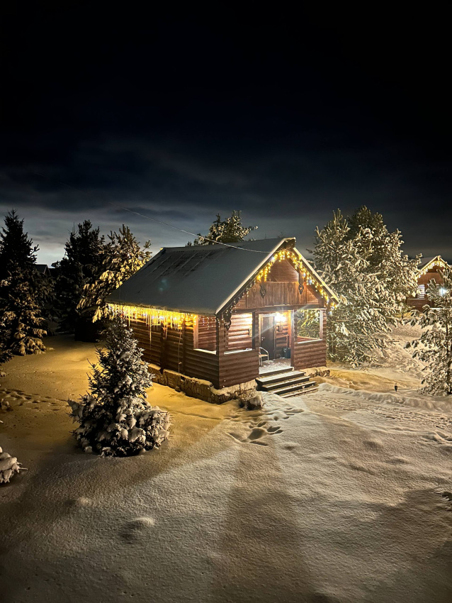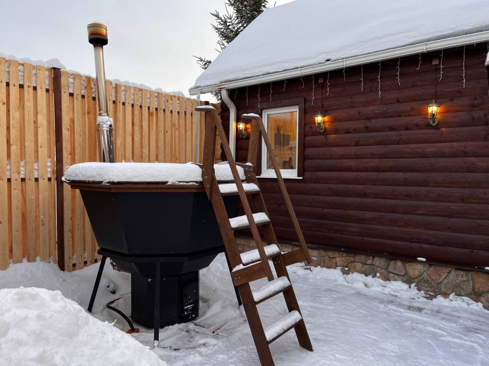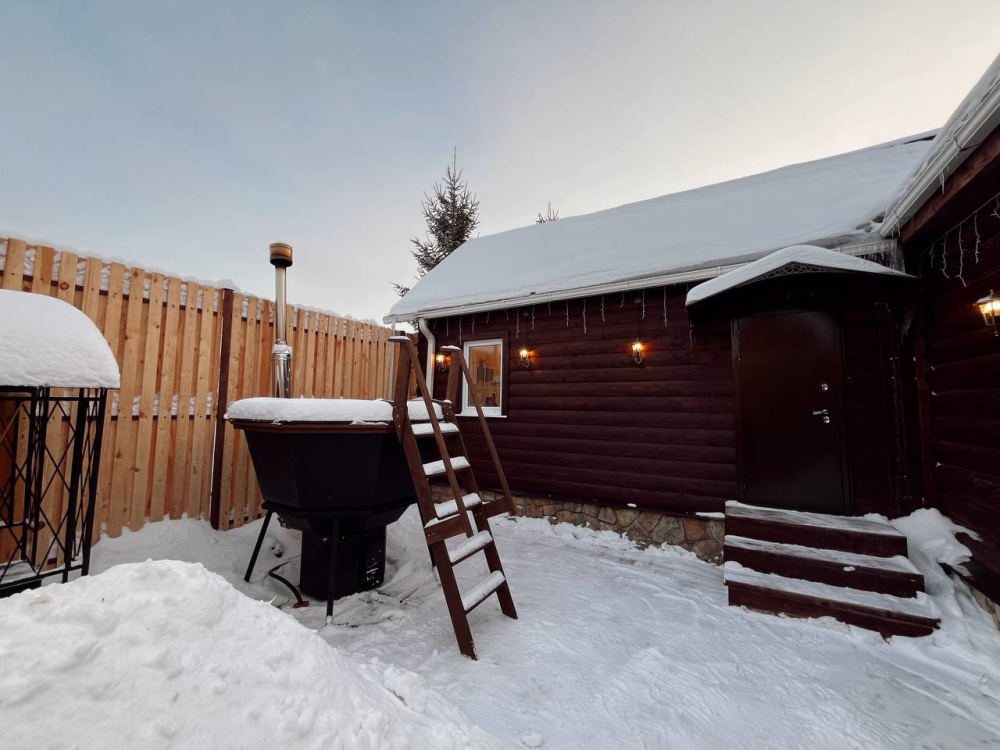 Отдельно по бане: баню брали большую, на 6 человек. Это сауна, без парилки. Красиво внутри, но бойлер маленький, помылись только 2 человека. И температура выше 62 не поднималась, хотя печник топил постоянно, и мы двери закрывали.. Надо что-то продумать с паклевкой или печь поменять. И самое главное - купель! Она прекрасна! Вода горячая, сидели в купели после баньки на морозе было просто супер! Но! Выход из купели и пробежка по ледяной дороге до бани… хозяева, попробуйте сами, и первое, что вы сделаете - дорожки!!! Простые резиновые или деревянные дорожки!!! Ноги примерзали реально, а обледеневшие деревянные ступеньки на крыльце… в общем, идея - супер, но вот в купель из-за этих вот минусов с дорогой обратно в баню сходили да 3 оплаченных часа только 1 раз. Но чай в бане, к слову, отменный!!! Из самовара, и выбор отличный, спасибо!!! Шапок бы ещё, а то у нас на всех одна была…