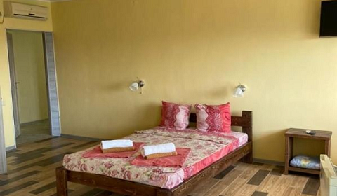 Приглашаем Вас посетить Райский уголок на побережье Крыма "ШТИЛЬ"Уникальное расположение Пансионата Штормовое между морем и двумя грязевыми озерами делает это место по настоящему привлекательным для отдыха и оздоровления!!! Находится на берегу Черного моря в п. Штормовое, в 20 метрах от пляжа. С трёх сторон окружён целительными природными грязевыми озёрами и морем: Аджибайчикское (лиманное) с черной лечебной грязью, а совсем рядом в 30 метрах озеро Ойбурское - известно своими богатыми запасами голубой глины, что привлекает многих туристов.Красивый пейзаж, аромат степных трав, чудесный климат, рядом натуральная голубая глина и самое чистое море на побережье Крыма с широким песчаным пляжем, что еще нужно для отдыха и уединения с природой!Сам же пансионат граничит непосредственно с пляжем для общего пользования.На территории расположена столовая, где для вас готовят вкусные домашние завтраки, и продуктовый минимаркет, где вы найдёте все необходимое. Центр посёлка в шаговой доступности, и расположен пансионат Штормовое прямо на берегу!В этом сезоне для вас произведен капитальный ремонт в номерах а завтрак уже входит в стоимость!Обеды и ужины организованы по меню. У нас имеется детский бассейн с пресной водой, прокат пляжных зонтов и шезлонгов. Всего 20 номеров, каждый из них имеет собственный балкон, кондиционер, спутниковое Тв, холодильник и санузел с постоянной горячей и холодной водой. Так же, ближе к морю, располагаются домики для кемпинга.На территории пансионата имеется кафе с домашними, вегетарианскими и диетическими блюдами и приемлемыми ценами, мини-бар. Также на территории детская площадка, услуги аниматоров, что удобно для отдыха с детьми, волейбольная площадка и настольный теннис.Брони принимаются ежедневно! Торопитесь, количество мест ограничено! Ждём Вас в гости в пансионате Штормовое.Платные услуги:- Профессиональный массаж и фито-паро-бочка.- Прогулка на катере и рыбалка- Конные прогулки- Экскурсионные туры- Дельфинарий- Купание с дельфинами- Дайвинг на мыс ТарханкутВозле жилого корпуса располагается охраняемая автостоянка и по всей территории есть Wi-Fi зона.Приезжайте на самое чистое побережье в Крыму, на базу отдыха штиль Штиль!