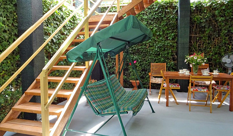 К вашим услугам в доме: 2 телевизора, чайник, 2 кондиционера. Плоская эксплуатируемая крыша с навесом.