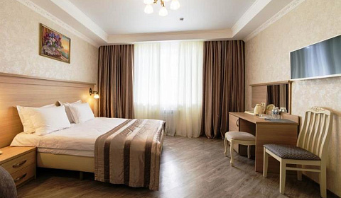 Номер отличный, все необходимое есть- холодильник, чайник, фен, халаты, тапочки, телевизор. Кровать удобная, белье идеально чистое.