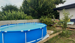 В доме имеется все для вашего комфортного отдыха: просторный двор, каркасный бассейн, Wi-Fi интернет (бесплатный), холодильник, телевизоры, два санузла с душем на каждом этаже, 4 спальные комнаты, навес с мангальной зоной, лежаки, качели, парковка, а также шампура, казан, посуда.