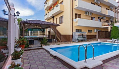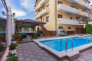 - благоустроенный внутренний двор (столы, стулья, шезлонги, беседка-бар)
