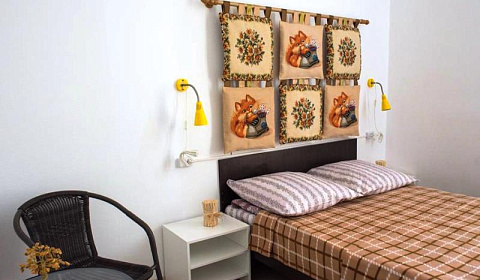 Пожелание- хоть в спальнях есть шкаф, куда можно сложить вещи, я бы все- таки пр поставила тумбочка по типу прикроватных и ещё кресло или стул со спинкой. Имею в виду общую комнату.