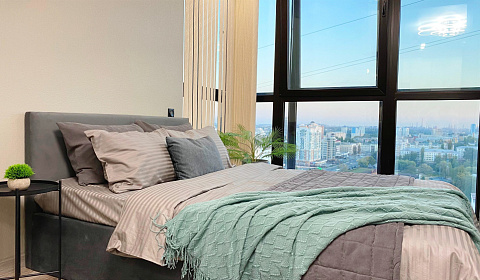 Квартира чистая, с хорошим ремонтом, было всё необходимое. Предоставили чистое постельное белье, полотенца, чай, кофе. Есть кондиционер, телевизор, быстрый интернет. Шикарный вид из окна!