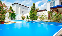 Территория оборудована очень уютно, все в цветах и скульптурах. Бассейн всегда