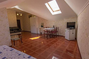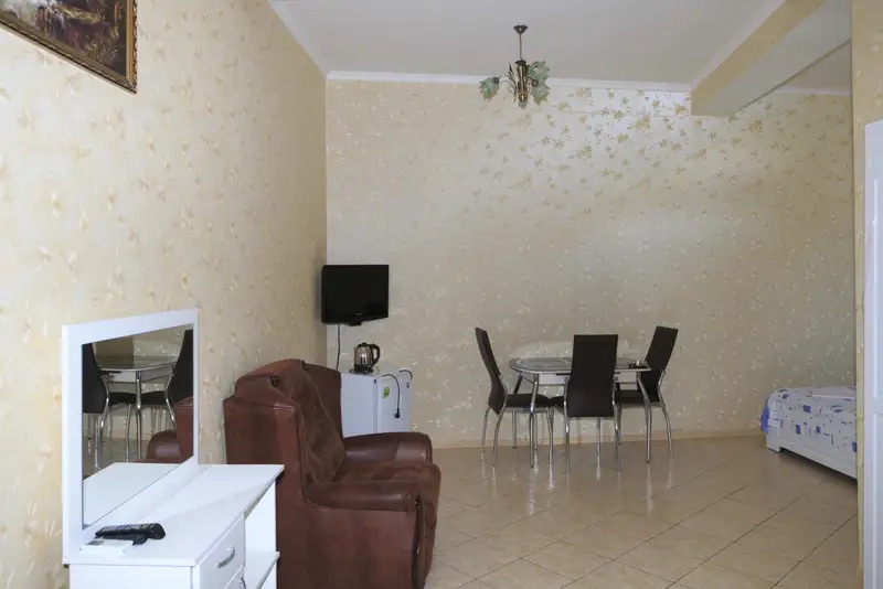 Нашли этот домик чисто случайно, по отзывам в интернете. Фото нам сразу понравилось, стали изучать информацию о нем, после слов о том, что на территории есть оздаровительный бассейн с подогревом, читьа дальше даже не стали, сразу начали звонить бронировть место. По приезду были удивлены тем, что все в точности как на фото, номер даже показался нам еще больше, чем на картинке. По расположению дома тоже все очень удачно: море близко, магазины есть, развлечения рядом. ХОрошее место, всем советую.