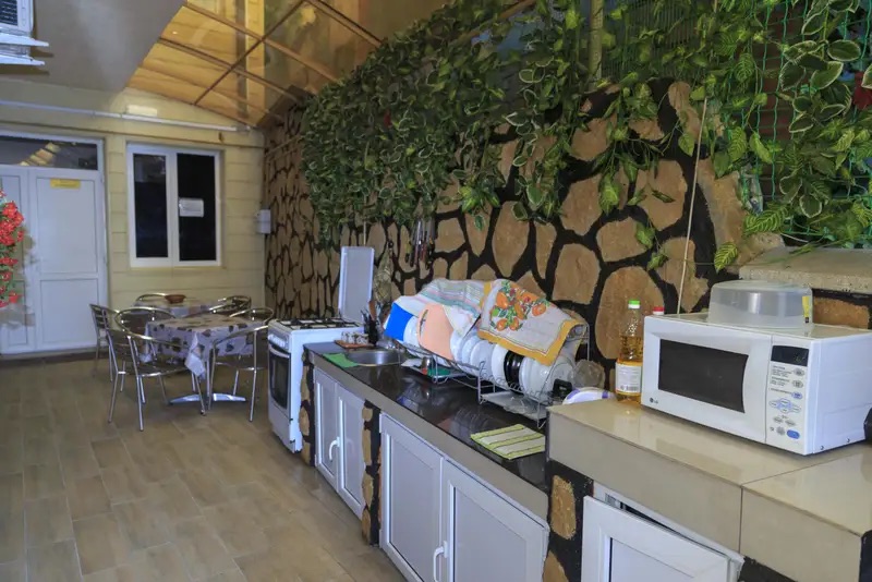 На территории есть Wi-Fi, летняя кухня, где вы можете самостоятельно приготовить пищу. Так же в паре минут ходьбы есть кафе и столовые.