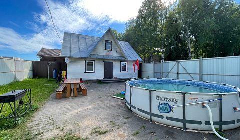 *О доме Количество комнат: 4 Площадь дома: 100 м² Площадь участка: 5 сот. Этажей в доме: 2 Для отдыха: летом уличный бассейн Санузел: в доме Коммуникации: электричество, газ, отопление, канализация Техника: холодильник, плита, микроволновка, стиральная машина, телевизор Интернет и ТВ: Wi-Fi, телевидение Парковка: парковочное место Транспортная доступность: асфальтированная дорога, остановка общественного транспорта Залог: 5000 ₽