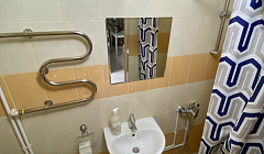 Не считаю это минусом, вношу, как предложение: оборудовать душевую кручками или полотенцедержателем. И постелить прикроватные коврики. Да есть тапочки, но хочется плитку застелить ковриком.)))