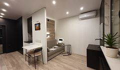Современная студия около станции МЦД Нахабино (D2). В квартире есть все необходимое: - санузел с ванной, стиральной машиной и бойлером; - встроенный шкаф в прихожей; - кухня со встроенной техникой (СВЧ, духовой шкаф, индукционная плита, холодильник, посудомоечная машина, фен); - ниша с удобным раскладным диваном-кроватью (в разложенном виде - ровная поверхность для сна); - кондиционер.