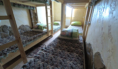 Кровать в общем номере с красивым видом из окна (общая ванная комната)
