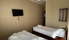В номере нет холодильника и чайника, на телевизоре работает только один детский канал, очень маленькие неудобные подушки, нет полотенец (только за доп плату).