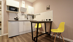 Мы рады приветствовать вас в нашей уютной студии. Здесь вы найдете все удобства для комфортного проживания: современную кухню, удобную зону для отдыха и атмосферу, способствующую расслаблению.