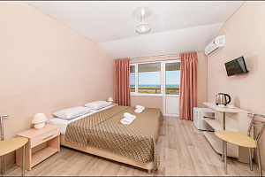 Широкий песчаный пляж, оснащенный лежаками и навесами, чистое, неглубокое море. Благоустроенные коттеджи, корпуса и домики — всего в 100 метрах от пляжа. На территории — бассейн, кафе-бар, детская комната, зоны релакса и зоны барбекю, стоянка. Ежедневная анимация для детей и не только! Пенные вечеринки у бассейна. Включено питание — полупансион.