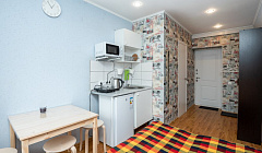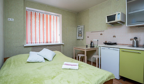 В целом, осталось неплохое впечатление. В реале все выглядит лучше чем на фото. В студии чисто. Есть посуда, плитка, стиральная машина, сушилка, стол, во дворе собственная удобная парковка. Дистанционный заезд. Администратор всегда на связи.