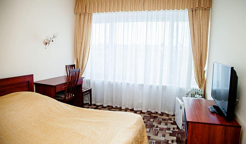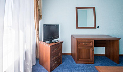 Номер одноместный, заселили сразу на 10 этаж (есть 3 лифта). В номере всё чисто: кровать, бельё, телевизор-20 федеральных каналов, кондиционер-спаситель, причём современный, стол, стул, кресло, холодильник, подставка для багажа, шкаф, сейф, телефон, инструкция, как со всем этим обращаться.