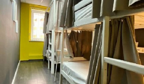 Кровать в общем номере с красивым видом из окна (общая ванная комната)