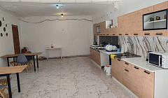 При гостивом доме имеется просторная кухня столовая со всем необходимым.Мы готовили сами.