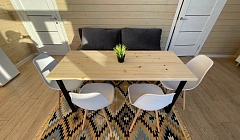 Гостевые дома у моря расположены недалеко от Каспийска и в 10 минутах от аэропорта. Дома рассчитаны на 6-7 человек. В каждом гостевом доме есть: В гостиной: раскладной двухместный диван (с подушками, одеялом, комплектом постельного белья), телевизор, стол, стулья; Зона кухни: раковина, кухонный гарнитур, холодильник, индукционная электроплита, электрочайник, заварной чайник, тарелки, кружки, бокалы, столовые приборы, кастрюля, сковорода; В спальне первого этажа: двухместная кровать (с подушками, одеялом, комплектом постельного белья), комод, тумбочка; В спальне второго этажа: двухместная кровать (с подушками, одеялом, комплектом постельного белья), комод, тумбочка; при необходимости предоставляется доп место. В душе: все удобства, большие и маленькие полотенца, средство для мытья рук, шампунь. До пляжа 150м. Недалеко от домов есть кафе. Добро пожаловать! 3-комнатный Дом в отеле «SOL beach house» категории «Дом у моря» дизайнерский евроремонт и кухня-столовая сдаётся на минимальный срок от 1 до 2 суток. Заезд после 14:00, отъезд до 12:00