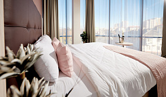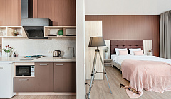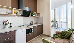 Жили в апартаментах делюкс. Просторный номер с хорошим ремонтом. В номере есть все необходимое для комфортного проживания. Холодильник, микроволновая печь, плита и даже стиральная машина. Все необходимые столовые приборы, шампунь, гель для душа, зубные щетки, чай, кофе, сахар. Питьевая вода в бутылках по количеству проживающих. Вода каждый день добавляется, полотенца меняют каждый день.