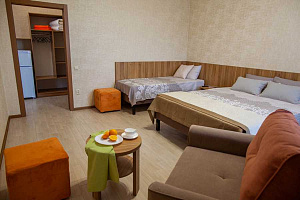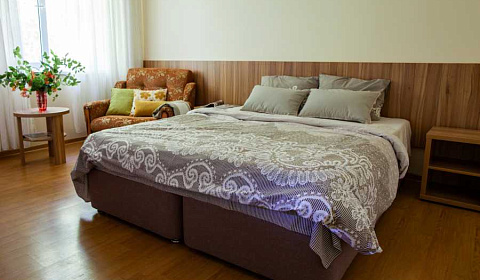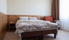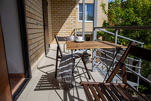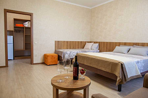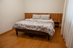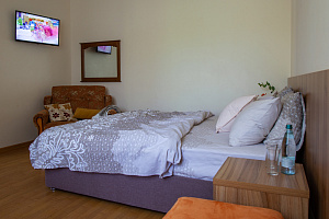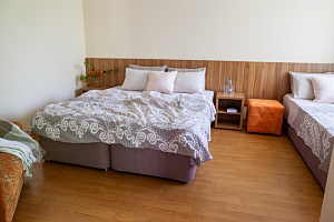 Отдыхали этим летом, в первый раз. Очень понравилось. Удобное расположение (налево - к каменному пляжу (мин 30), прямо - Центральный и самый короткий путь (10-15мин), правее - к песчаным пляжам и дюнам, пешком около 30 мин). Два здания (старое и новое). Большая кухня; столы как в помещении, так и на улице. Небольшая, но красивая придворовая территория, парковка на пару машин. Стирка платная - 200 р. Сушка - на улице или на сушилках в коридоре. Уборку делать самим, меняют только полотенца и постельное бельё, раз в 10 дней. У нас был небольшой однокомнатный номер. Спальня: большая кровать и полноценное место на ребёнка/взрослого + столовая/кухня/прихожая: своя плита в номере, готовили там же (чайник, холодильник, посуда, всё было). Нет вытяжки, в ванной маловато крючков, но номер новый, по мелочи есть недостатки. Тем не менее, сама гостиница очень понравилась (мы жили в новом здании). Светло, просторно. Адекватные хозяева. Достаточно спокойная улочка. В дожди не затапливало. В шаговой доступности магазины с продуктами, рынок не очень далеко. Дай Бог здоровья хозяевам, надеемся вернёмся.