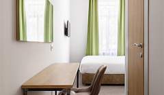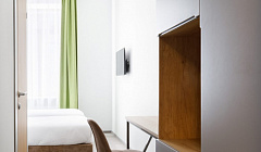 3. В номерах очень скучные недорогие интерьеры. Допустим, хозяева так видят минимализм. Но минимализм в наличии розеток, ночников и прочих удобств для постояльцев прямо зря. Хочешь зарядить телефон, чтобы был под рукой у кровати? Прости, уже включен обогреватель и отельный телефон, розеток больше нет. Не нравится общий больничный свет в номере и хочется уюта - нууу, ок, вот так с одной больничной лампой на потолке уютнее? Кстати, одна из «индивидуальных» ламп начинала раздражающе моргать через 3 мин. после включения.