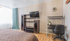 Не далеко от метро, в новом облагороженном районе города. Рядом есть большие ТЦ, красивая набережная и озеро. Заселение удобное, есть электронный замок. Никого не нужно ждать или куда то ехать. Очень чисто и приятно пахнет, очень удобная кровать, что сразу засыпаешь. Все что необходимо есть: чайник, стиралка, микроволновка, интернет. Чистое белье, в принципе хорошо убрано.