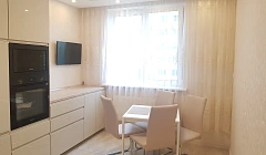 Большая кухня с современной бытовой техникой, застекленный балкон, который летом можно использовать как дополнительную комнату.