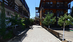 Ценник за номера очень сильно завышен - мебель бабка-стайл, в санузле крючки, полки и мыльницы - самый дешман, держащийся на честном слово - ничего толком не повесить и не поставить. Крышка унитаза на одном гвозде - сел и встал не дыша. Уборка очень посредственная и чисто символическая - душ кабина в засохших каплях чего угодно, стульчак в волосне и более понятных каплях. Пол моет очень задумчивая юная брюнетка - в одной руке телефон, в другой швабра - так и размазывает. На балконе куча помета и паутины - как в старом чулане, веника это место давненько не видывало. На гладильной доске ночью спят уличные кошаки - утром начинает глажку дама, ведущая хозяство.Белье когда-то и было белым, но не этим летом - тетя Ася еще не приезжала...