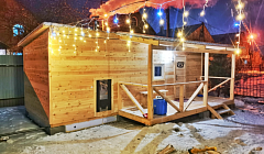 Кухня со всей необходимой посудой и техникой для приема пищи и приготовления различных блюд. Так же есть большой холл, там же есть столы за которыми может разместиться компания от 4х до 12 человек.