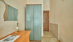 Есть вся необходимая мебель (шкаф, вешалка для верхней одежды, стол, стул, кровати) По запросу предоставляем дополнительное спальное место Санузел: собственный, раковина, фен, средства личной гигиены, полотенца, есть возможность принять душ в номере. Стоимость зависит от сроков проживания Кухня - общая Бытовая техника на общей кухне: телевизор, холодильник, микроволновая печь, чайники, стиральная машина, утюг, бойлеры для бесперебойной подачи горячей воды в случае ее отключения Средства коммуникации: интернет (Wi-Fi) Предметы быта: гладильная доска, сушилка для одежды, посуда Для вашего комфорта: - Кухня с оборудованной техникой и посудой - Стиральная машина - Утюг и гладильные принадлежности - Фен - Wi-Fi - Новое постельное белье и полотенца - Уборка каждый день - Продуктовые магазины, кафе, рестораны в шаговой доступности
