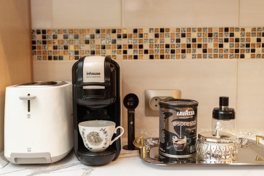 Есть все необходимое для приготовления еды. Продуктовые магазины в самом доме и в доме рядом. Рядом есть кафе и рестораны
