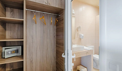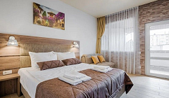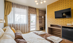 • 2х-местный с двуспальной кровать с ортопедическим матрасом "Комфорт", в комнате, для комфортного проживания: личный санузел с душем, кондиционер, рециркулятор, для снижения риска заражения COVID-19, москитные сетки, смарт ТВ, Wi-Fi, фен, сейф.