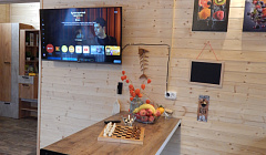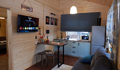 Комплектация дома: Спальни: Две двуспальные кровати 160х200, полный комплект свежего постельного белья и полотенец. Санузел: душевая кабина, фен, комплекты гигиены (зубные щетки, зубная паста, гель для душа, шампунь). Кухня-гостиная: Кофе, чай, сахар, посудомойка, комплект посуды и приборов, чайник, микроволновая печь, варочная панель, холодильник, диван, обеденная зона. Интернет: Высокоскоростной безлимитный WiFi. Телевидение: Телевизор 43 дюйма Tuvio с Алисой. Места хранения: Прихожая со шкафом для верхней одежды, спальни оборудованы прикроватными полками и вешалками. Комплект настольных игр: шахматы, нарды, дженга и тд.