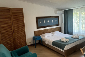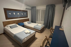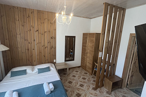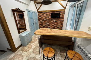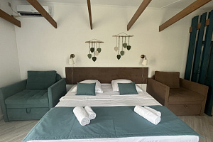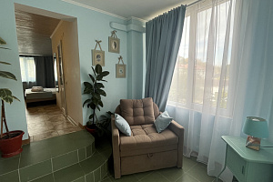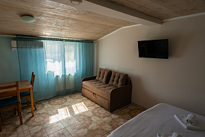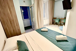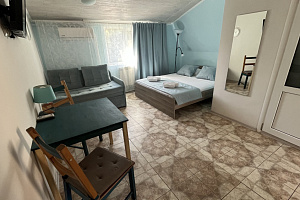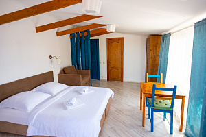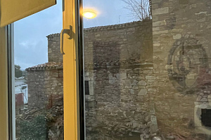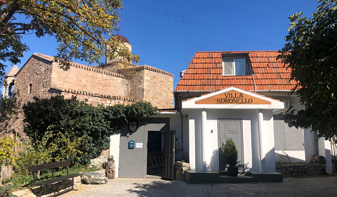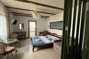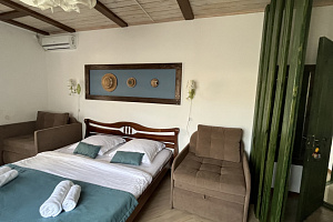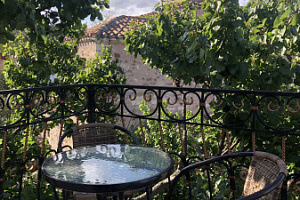 Отель в историческом районе города, рядом парки, могила Айвазовского во дворике армянской церкви, сам отель, кстати, соседствует со зданием нерабодающей армянской церкви. Тихий квартал, но до пляжа и променада недалеко. От автовокзала далековато, от железнодорожного, который прямо на пляже, можно быстро дойти без транспорта. Автобусная остановка рядом. Если заказывать такси, лучше указывать перекресток Армянской и Митридадской, так как, если указать "Армянская 13", навигатор приводит таксистов по Армянской улице снизу, а сама улица перегорожена и нужно будет пройти метров пятьдесят пешком.
