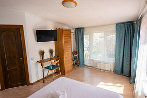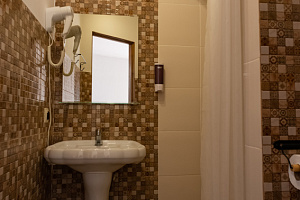 Все чистое, для жизни достаточно, соответствует фотографиям. Правда можно было бы на стенах разместить крючки для одежды, их, с моей точки зрения, много не бывает. Но прихожая оборудовано перекладиной с плечиками, на не же подвесные полочки для одежды. Для меня главное, что на столе можно было более-менее удобно расположиться с компьютером для работы, во многих отелях сейчас такого нет. Есть бесплатный сейф, ключ от него выдали на связке с номером.