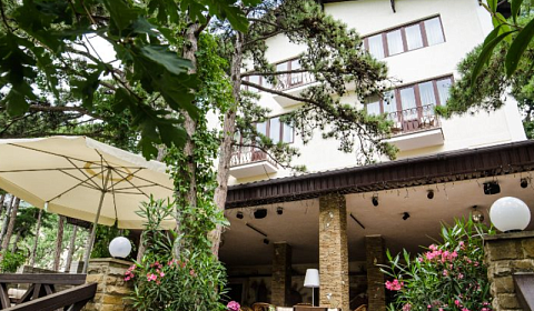Небольшая гостиница премиум-класса в Мисхоре подойдет как для оздоровления, так и для великолепного семейного отдыха. Вилла "Сосновый бор" расположена в живописном уголке пригорода Ялты (13 км), в окружении парков и достопримечательных мест, таких как: Ласточкино гнездо, Воронцовский дворец, Ливадийский дворец, канатная дорога на плато Ай-Петри. В 10 минутах ходьбы от отеля находится роскошный Мисхорский парк с выходом на причал, откуда можно отправится на катере в Ялту. Любуясь завораживающими пейзажами побережья, вы отдохнете и получите много новых впечатлений. Наши гости рекомендуют нас! У Виллы "Сосновый бор" в Мисхоре есть своя закрытая территория, 18000 кв.м., утопающая в зелени шестидесяти крымских сосен, лечебно воздействующих на дыхательную систему. На территории имеется ресторан, охраняемая стоянка на 5 - 6 машин, бунгало, где можно проводить свой досуг, читая книгу или наслаждаясь бокалом крымского вина. Рядом с отелем расположены магазины, парикмахерская, экскурсионное бюро, аптека, салон мобильной связи, кафе и отличная транспортная развязка. Прогулка к пляжу займет всего несколько минут (250 метров) через парк. Вилла располагает шестью люксами площадью 40 кв.м. и одними 2-х комнатными апартаментами 80 кв.м. Есть возможность бронирования всей виллы полностью (цена договорная). Отдыхающие в отеле за дополнительную плату могут заказать завтрак или полный пансион - 3х-разовое питание, а так же абонементы в бассейн, СПА или посещение лечебной базы санатория "Родина".