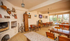 Для приготовления домашних блюд гостям предлагается готовить на общей кухне, оборудованной техникой. Имеется мангальная зона, которой также можно воспользоваться. Есть небольшая детская площадка и каркасный бассейн. Поблизости есть продуктовые магазины и места питания, где представляется огромный выбор блюд.