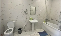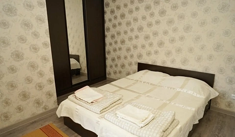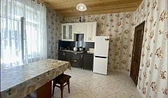 Хороший гостевой вариант, гостиная плюс спальня, явно недавно построенный дом. Вид из окна на горы, огороженная территория, можно поставить как минимум одну машину (а возможно и две). На участке живёт кошка с котятами, растут вишни.