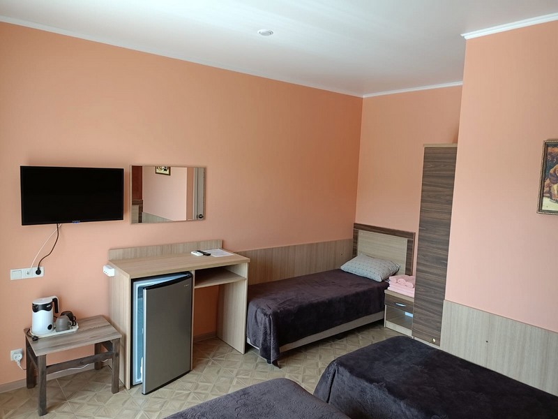 Каждый номер из категорий "Комфорт" 2-местный , "Комфорт" 3-местный , "Комфорт" 4-местный располагает всем необходимым для вашего отдыха, по максимально комфортной цене .В каждом номере холодильник, телевизор, кондиционер, свой душ и туалет .