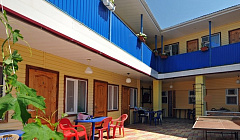 К плюсам, я могу отнести доброжелательность персонала, чистоту и порядок на территории, в номерах. Также приятно порадовало месторасположение, дом находится в 2-5 минутах от моря. В эконом-номерах есть кондиционеры, в номерах подороже есть ванная и туалет. На территории имеется WiFi, пароль от которого весит на кухне 1-го и 2-го этажа. Н первом этаже есть 3 душа, 3 туалет, место для курения, кухня и номера. На втором этаже, есть душ, туалет, также кухня и номера. При желании можно попросить решётку для шашлыка. За порядком следят сами хозяева. Очень хорошее место и цены приемлемые. Насекомых и змей нет, только ночью выползают паучки)