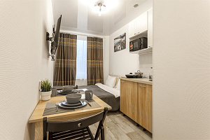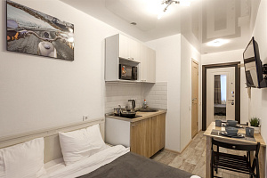 Уютная и чистая студия с евроремонтом от собственника. Фото 100% соответствуют. В апартаментах есть всё для комфортного проживания:- чистая квартира с хорошим ремонтом, выглаженное постельное белье и махровые полотенца!- набор принадлежностей для душа: гель для душа, шампунь, мыло- кухонный гарнитур со всем необходимым для приготовления любимой домашней еды (холодильник, микроволновая печь, чайник, встроенная плита, кухонные принадлежности, посуда, столовые приборы)- обеденный стол со стульями- удобная кровать с ортопедическим матрасом, на которой приятно спать!- современная стиральная машина- беспроводной интернет (WI-FI)- ЖК телевизор + Smart TV- фен (по запросу)Уважаемые гости!1) Заселение возможно в любое время с 14:00 до 22:00, а выезд в 12:00. Раннее и позднее заселение/выезд обговариваются индивидуально ПЕРЕД совершением бронирования.2) При заселении предусмотрен возвратный страховой депозит всего 1000р. Залог возвращается в день выезда после принятия квартиры горничной, если соблюдены правила проживания и помещение в порядке. В случае нарушения правил проживания, либо порчу имущества залог может быть удержан.3) Оплатить за проживание и залог возможно по Q-коду (переводом на карту). Заселение самостоятельно по кодовому электронному замку (бесконтактно) или забрать ключи (в зависимости от выбранной Вами квартиры). При заселении с 14:00 до 18:00 вам может помочь заселиться горничная и оплатить наличными, при себе необходимо иметь только паспорт.4) Строго ЗАПРЕЩАЕТСЯ КУРИТЬ на всей территории любые виды сигарет5) Не разрешается находиться большему числу гостей, чем было указано при бронировании (на общей территории дома ведется видеонаблюдение)6) НЕ разрешается ШУМЕТЬ в установленные тихие часы - с 21:00 до 8:00 в будние дни и с 22:00 до 10:00 в выходные7) Проводить ВЕЧЕРИНКИ и праздники строго ЗАПРЕЩАЕТСЯ8) Не разрешается проживание с животнымиБлагодарим Вас, что Вы уделили время и ознакомились с нашими правилами!