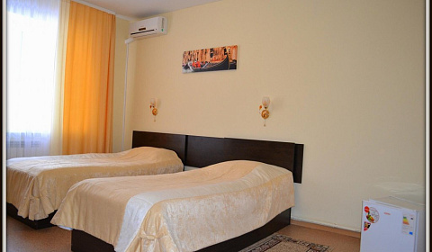 В номерах имеются одна или две односпальные кровати (900х2000), рабочий стол, шкаф для верхней одежды, холодильник, жк-телевизор с кабельным телевидением, чайный набор, бокалы для воды, электрический чайник.