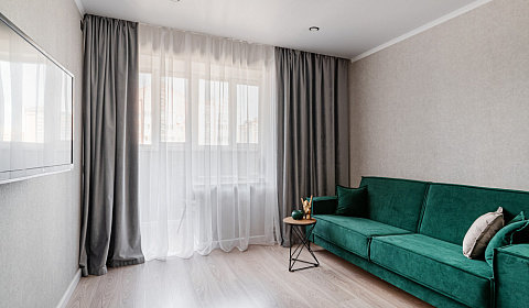Очень хорошая квартира. Нам понравилось что в ней имеются кухонные принадлежности и Wi-Fi. Красивый и интересный интерьер. Очень круто что есть парковочное место и всё в шаговой доступности: аквапарк "Ривьера", можно дойди до набережной, ТЦ Тандем и мемориальный парк победы. Отзывчивый персонал. Квартира в жизни выглядит еще лучше чем на фотографиях. Цена полностью оправдывает все ожидания.
