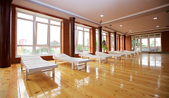 Первый этаж отеля отдан под аква-банный комплекс. Здесь гости могут посетить крытый бассейн с подогревом воды в диапазоне 26-29 градусов, воспользоваться баней, сауной, услугами массажа, позагорать на открытых террасах с шезлонгами.