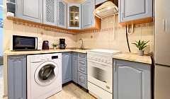 Кровать удобная, в гостиной диван, в кухне - вся бытовая техника, стиральная машина. Есть все необходимое для комфортной жизни, даже бытовая химия и пылесос.
