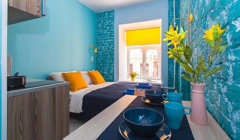 Прекрасный отель! Фото соответствует действительности. Своя ванная комната, мини-кухня с посудой. Есть сушилка для одежды, в коридоре стиральная машинка, утюг и гладильная доска. Так же есть гель для дуга и шампунь в упаковке. Еще есть бируши. Сам отель находится в 6-7 мин. ходьбы от М. Сенная площадь, Спасская, Садовая, в 17 мин. от М Невский проспект. Окна отеля выходят во двор дома-колодца, поэтому очень тихо. Дикси, Магнит, Перекресток в шаговой доступности. Отзывчивый персонал, встретили по приезду, ответили на все интересующие меня вопросы. В данный отель я вернусь оьязательно!