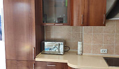 Между комнатами кухня. Укомплектована полностью. Даже перечислять не буду. На кухне свой балкон.