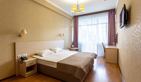 В номере двуспальная кровать и кресло-кровать, шкаф, телевизора, кондиционер, утюг на этаже, фен, сейф. Кухонный уголок с посудой, чайником и мини холодильником. Кабельное телевидение, высокоскоростной интернет. Предоставляется постельное бельё и полотенца на количество отдыхающих!